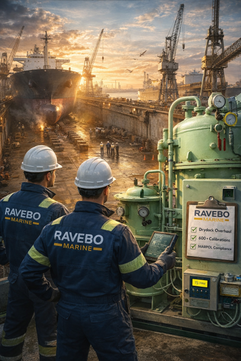 In parallel, more than 400 calibrations and system health checks were carried out. These included 15 PPM bilge alarm calibration, ODME/OCM verification and safety sensor and alarm integrity testing. All work was executed in accordance with MARPOL Annex I requirements, ensuring vessels remained inspection-ready.